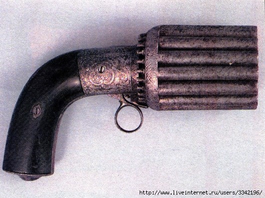 Оружейные конструкторы с момента создания первых пистолетов искали пути повышения их скорострельности. Самый простой, лежащий на поверхности проблемы способ - это увеличить количество стволов. И оружейники, дабы не слишком ломать свои головы, пошли по пути наименьшего сопротивления, изготовляя многоствольные громоздкие пистолеты, размерами напоминающие мастодонтов! Такое оружие больше пугало, чем поражало огнем: за несколько секунд взвести целую клавиатуру курков, разобраться пальцем на ощупь в частоколе спусковых крючков и произвести серию прицельных выстрелов по быстро двигающимся врагам из раскачивающегося в руке тяжеленного "пулемета" мог, пожалуй, только кинематографический супермен, коих в то время, естественно, еще не водилось... Более-менее приемлемыми были лишь